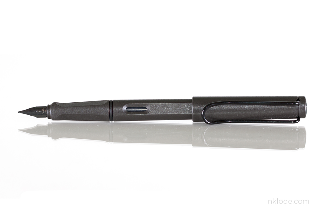 The Lamy Safari comes in a wide variety of colors. Some of those colors are actually limited editions made for one specific year (though some of those colors are repeated in later years), but the simple format of the pen itself never changes. There is also a clear (demonstrator) version of this pen which is often referred to as the Lamy Vista. My personal color of choice was the charcoal gray with matching trim. The body is made of a hard resin that has been given a textured surface (note: most Safari models are not textured but rather smooth plastic) which helps you keep a good grip on the pen and also adds a bit of character to it as well. Along the sides of the pen is an open-air ink window on either side, and the words, “LAMY” on one side. The pen is light, but it does not feel cheap. When posted, the pen feels a bit back-heavy and I find it more comfortable to write without the cap. The resin feels strong and does not flex if you squeeze it. Unlike some of the cheap knockoffs, the Lamy Safari feels like a pen that is built to take some abuse.
